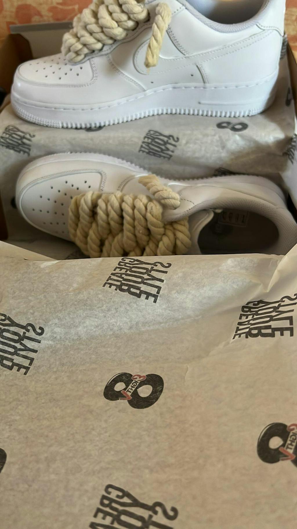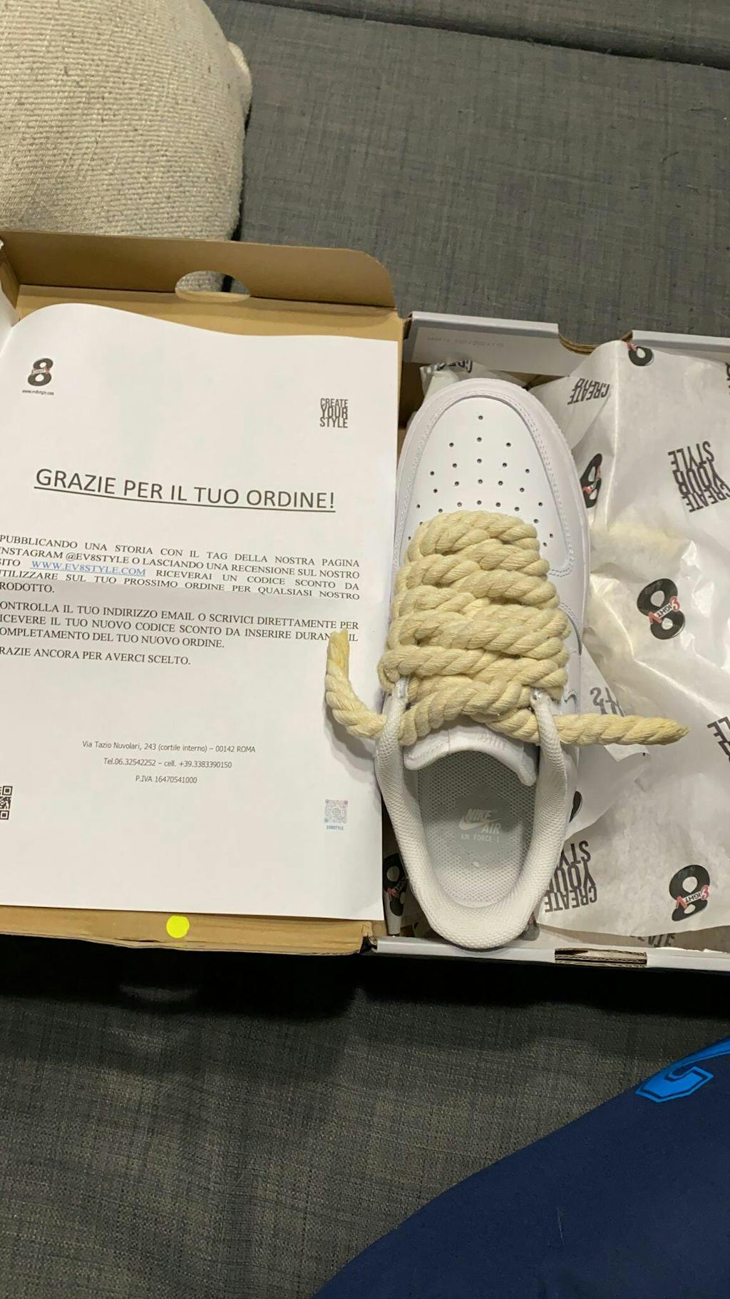 - Air Force Tint + Rope Tint: Production and shipping times of 15/20 working days. This version requires a longer manufacturing process since every detail of the sneakers is carefully taken care of to guarantee you a high quality product.